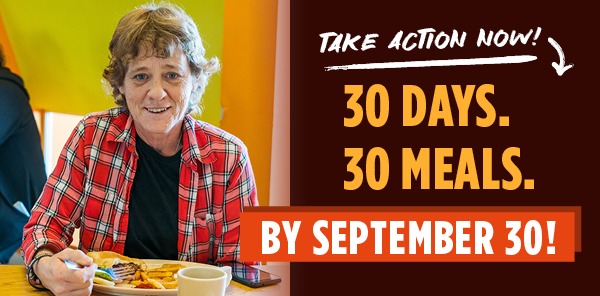 September is Hunger Action Month – and YOU can join our community in taking action for our hungry neighbors: 30 days... 30 meals... By September 30!