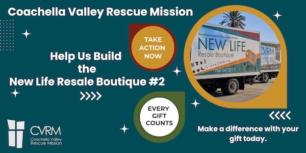 The Coachella Valley Rescue Mission is excited to build and open the New Life Resale Boutique #2, in honor of Darla Burkett. Together, we are building more than a store. We are building a future filled with hope.